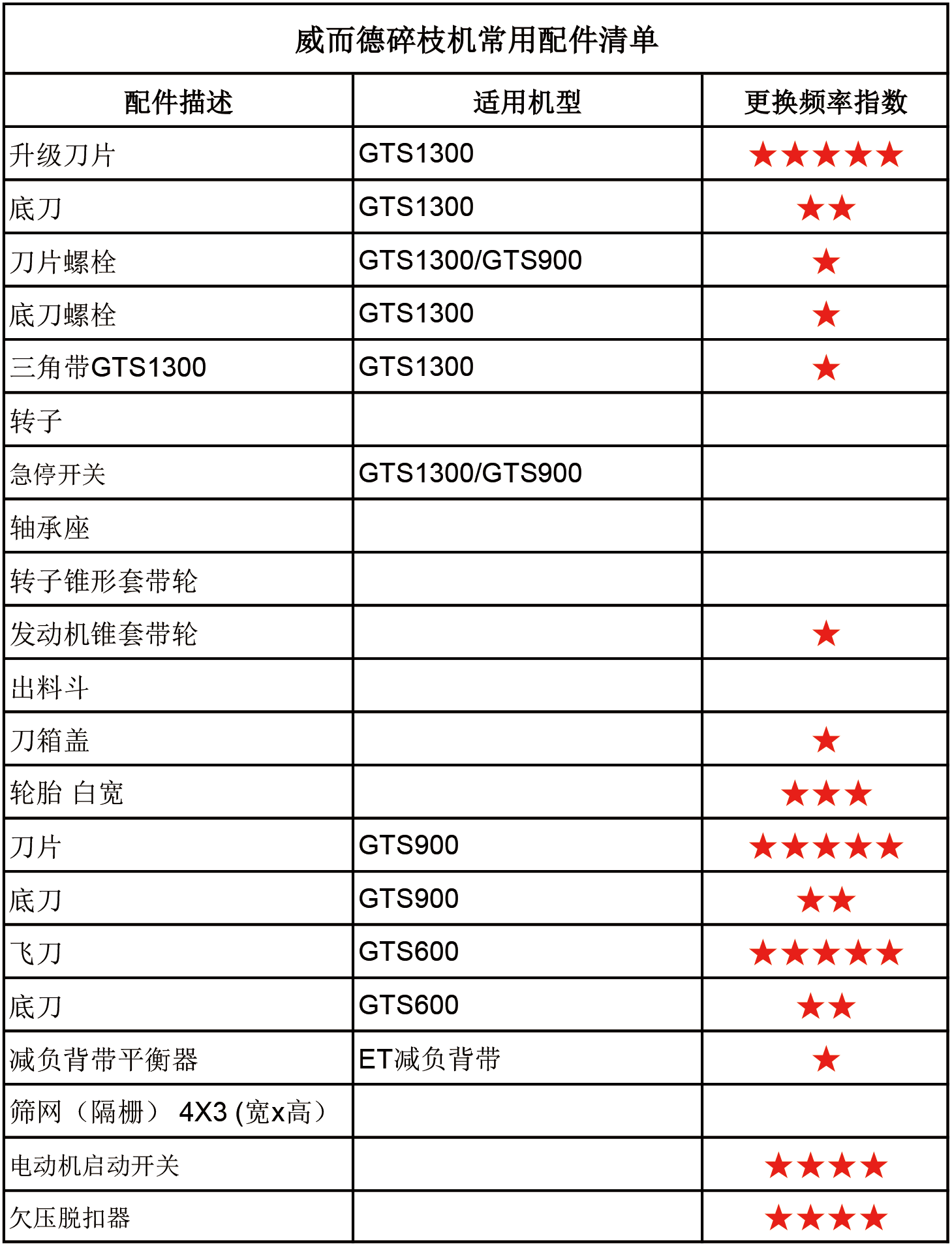 威而德碎枝機(jī)常用配件清單