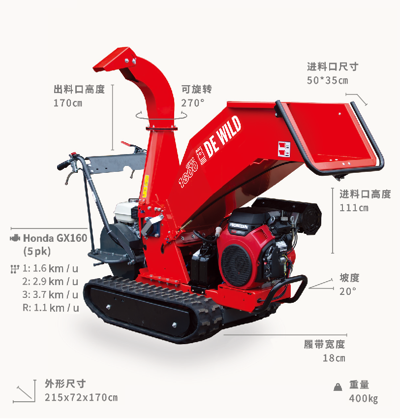 我們很榮幸地為大家介紹威而德家族又一款履帶自走碎枝機GTS1800R, 搭載本田GX630雙缸汽油發(fā)動機,大馬力動力更強勁。可將直徑12cm的新鮮樹枝卷入,即刻變廢枝為木屑,高效處理枝條秸稈等綠色廢棄物并實現(xiàn)循環(huán)利用。