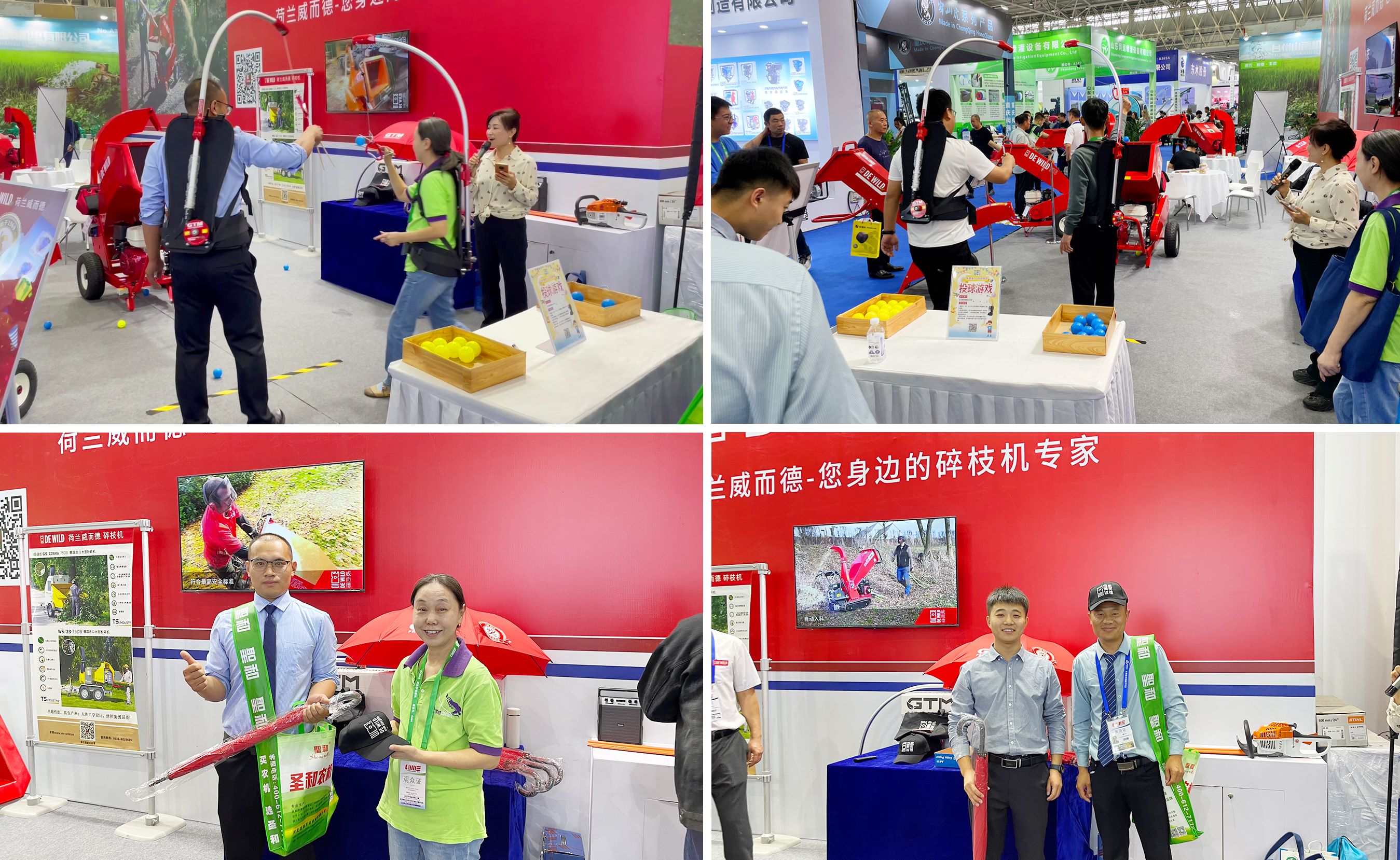 除碎枝機外,威而德公司還在積極推廣象鼻管減負背帶在國內(nèi)的應(yīng)用。該減負背帶可以有效地為綠籬機、采茶機、吹風(fēng)機等小型設(shè)備進行提效減負,能極大緩解一線操作者的身體負擔(dān)。為了讓大家更好的體驗這款新穎的產(chǎn)品,我們特意利用象鼻管減負背帶設(shè)計了有趣的投球游戲。在兩人一組的PK賽中,大家在收獲比賽的刺激與快樂的同時,也為象鼻管減負背帶的巧妙設(shè)計嘖嘖稱贊。為期兩天的游戲活動中吸引了50多人參加,效果遠超預(yù)期。