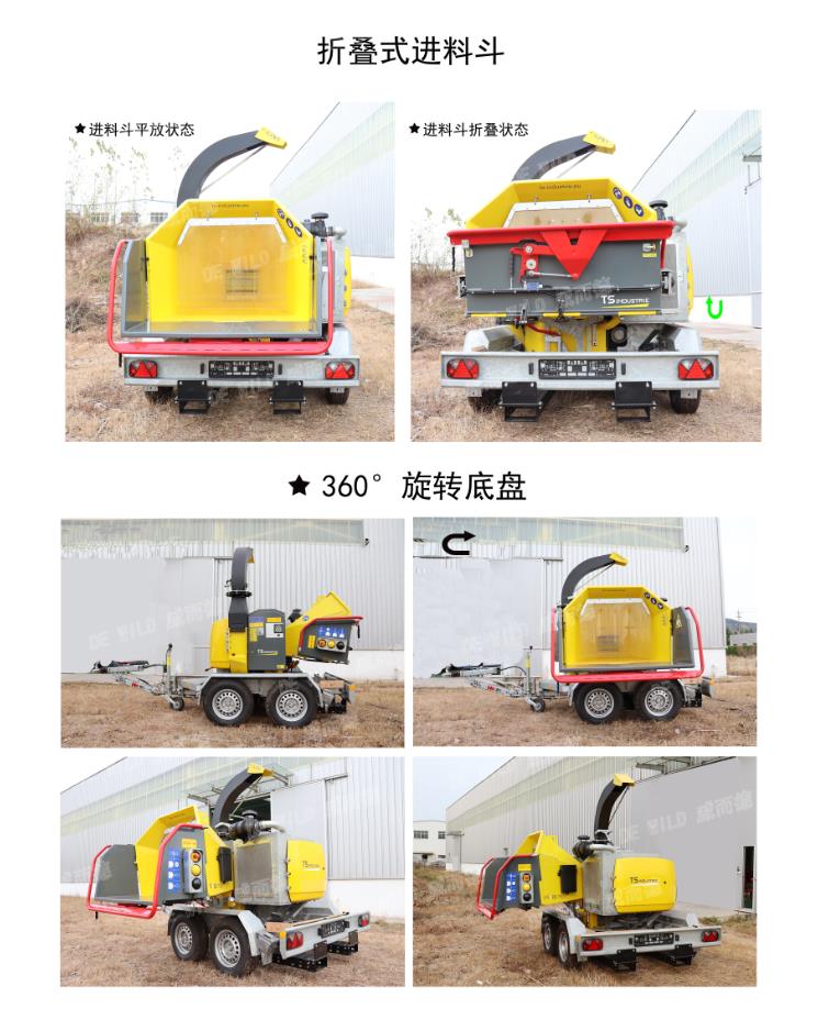 WS系列(Wood Series 樹枝粉碎系列):盤式切削樹枝粉碎機(jī),360°旋轉(zhuǎn)底盤,最大粉碎直徑23cm,智能控制系統(tǒng)。連接桿高度可調(diào),適配各類型拖車。