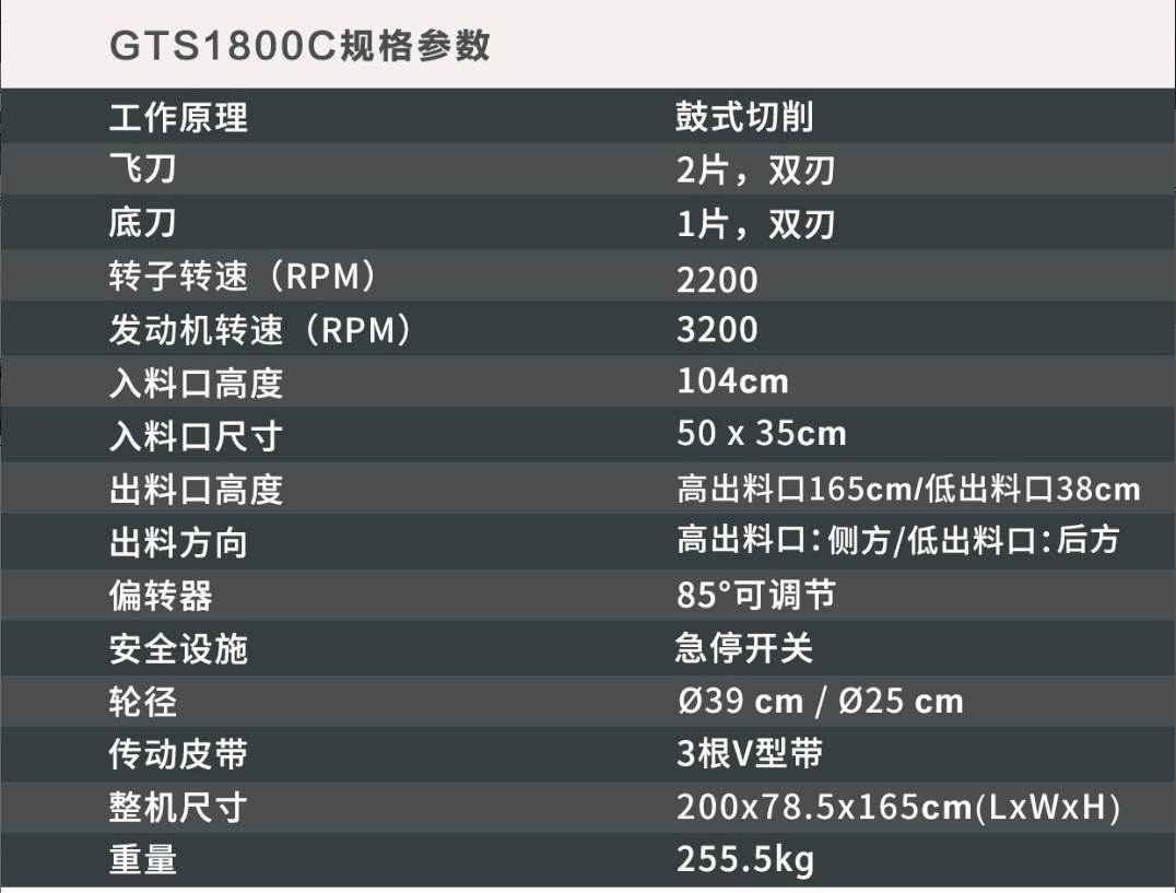 全新上市的威而德GTS1800C是一款功能強(qiáng)大的專業(yè)級(jí)碎枝機(jī),可廣泛應(yīng)用于農(nóng)業(yè)、園林、林業(yè)等領(lǐng)域。