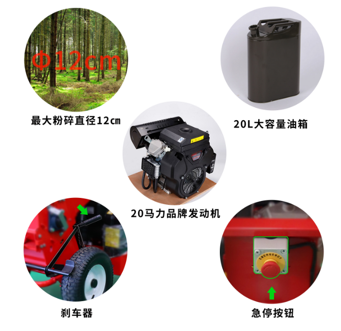 GTS1800C搭載20馬力隆鑫汽油發(fā)動(dòng)機(jī),動(dòng)力強(qiáng)勁,最大粉碎直徑12cm。威而德碎枝機(jī)采用高效穩(wěn)定的鼓式切削系統(tǒng),粉碎物顆粒均勻,易于漚肥或制成有機(jī)覆蓋物。
