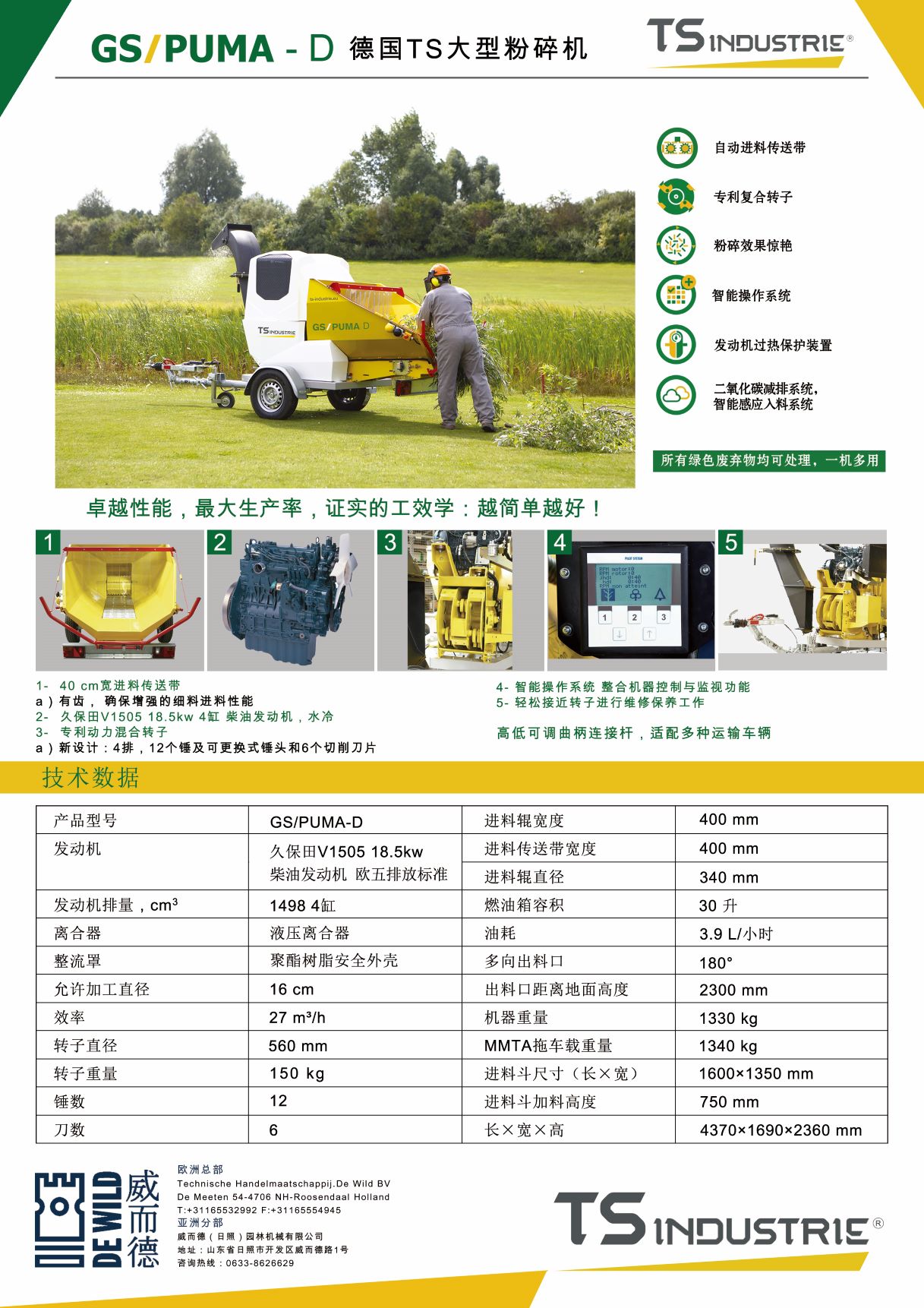 為了滿足國(guó)內(nèi)用戶對(duì)高品質(zhì)大型粉碎機(jī)的需求,威而德荷蘭總部與TS Industrie公司強(qiáng)強(qiáng)合作,向中國(guó)引進(jìn)了德國(guó)TS大型粉碎機(jī)。德國(guó)TS Industrie公司成立于1880年,為歐洲知名百年企業(yè),專業(yè)生產(chǎn)各類大型木材粉碎設(shè)備。其產(chǎn)品主要分為兩個(gè)系列,GS系列和WS系列。